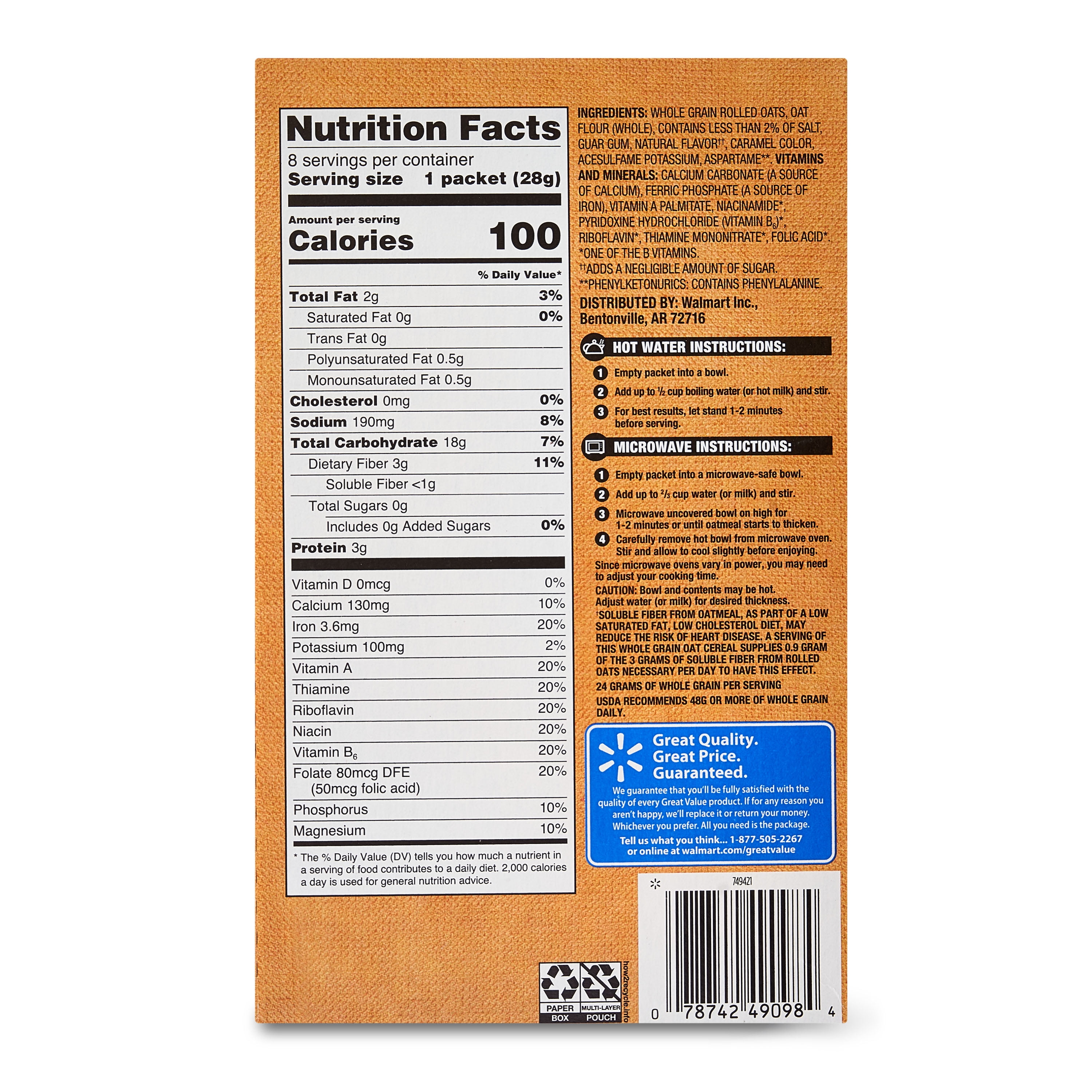 43 oatmeal ingredients label